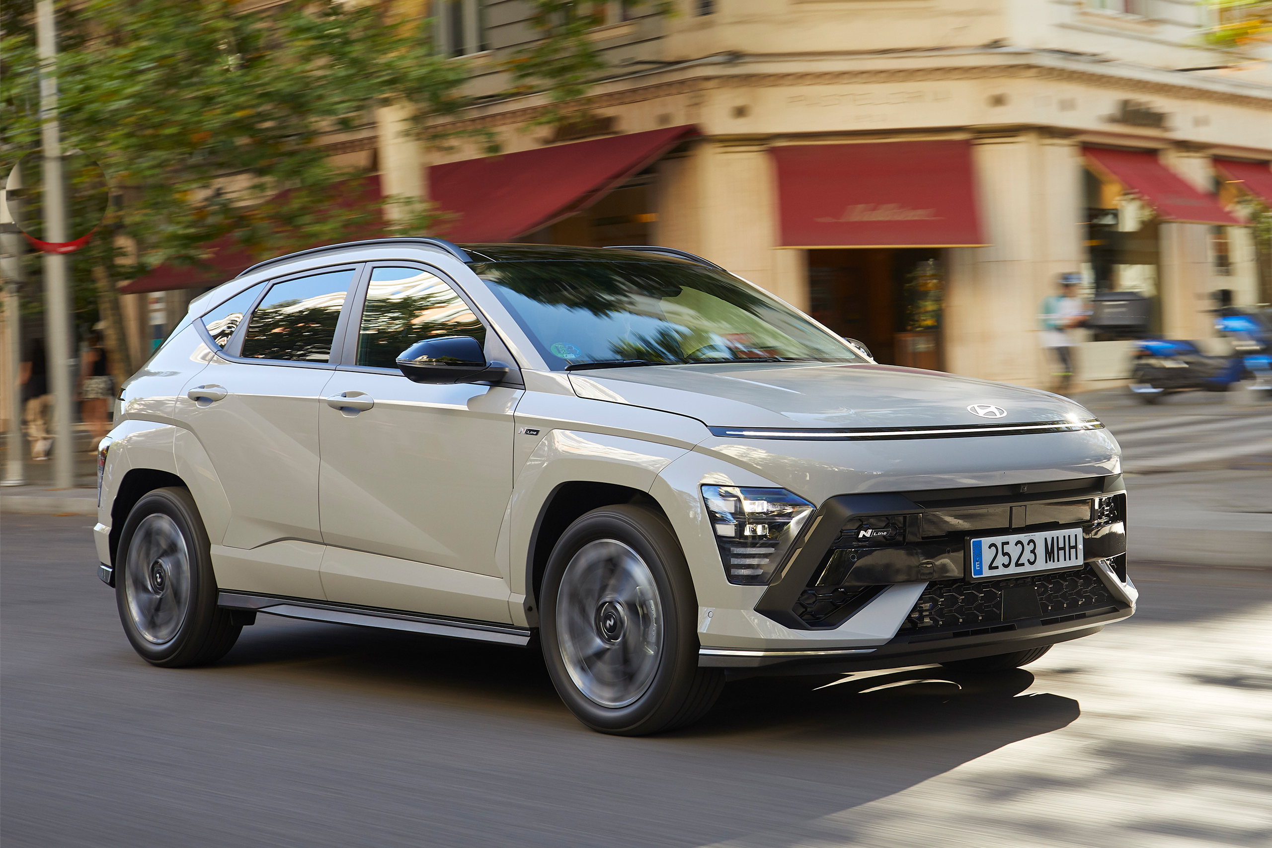 Hyundai KonaEsta segunda generación del Hyundai Kona no sólo se sitúa en la parte alta del segmento por tamaño, sino también por tecnología. El Kona mejorado ofrece una presencia dinámica en carretera, así como un interior centrado en el conductor con un espacio habitable versátil que satisface tanto las necesidades prácticas como estéticas. Estrena el puesto de conducción Connected Car Navigation Cockpit (ccNC), que ofrece una experiencia totalmente digital gracias a la integración de dos pantallas de 12,3 pulgadas, y las últimas innovaciones del equipamiento de seguridad y asistencia a la conducción Hyundai Smart Sense, las funciones de coche conectado Bluelink, actualizaciones automáticas de software Over The Air (OTA), conectividad, o el equipo de sonido premium Bose Este modelo da un salto cualitativo en el segmento B-SUV con lo último en diseño, tecnología, seguridad y opciones de propulsión. Está disponible con una amplia gama de opciones mecánicas, que incluye versiones con motor de combustión interna (ICE), híbridas (HEV) e híbridas ligeras de 48 V, todas ellas con variantes deportivas N Line, y versiones 100% eléctricas. -